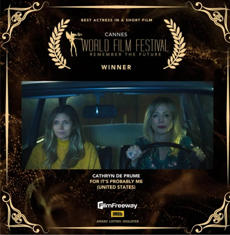Recently I was awarded best actress in a short film at the Cannes World Film Festival.